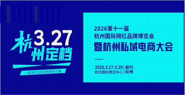 2026第十一届杭州国际网红品牌博览会暨杭州私域电商大会是一场私域电商全域营销主题展会,一场私域电商人必打卡行业盛会,展会将于2026年3月27日-29日在杭州国际博览中心(G20展馆)举办。本届展会深耕4大热门渠道以私域+推客+达播+集采等,源头工厂和供应链企业,设立品牌展示、渠道对接、网红选品、论坛大咖研讨等环节,杭州聚集着全国60%的MCN机构,超5000家直播相关企业注册,每244人中就有1位直播从业者,滨江区的直播产业园内每日直播场次超过千场,整合杭州优质的私域电商新渠道资源,打造私域电商生态圈,助力企业开拓全渠道营销。